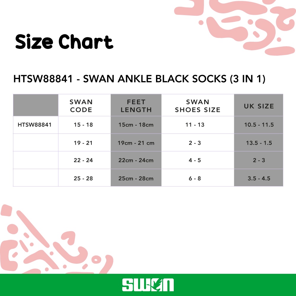 SWAN ANKLE BLACK SOCKS (3 IN 1) G – (22/24)